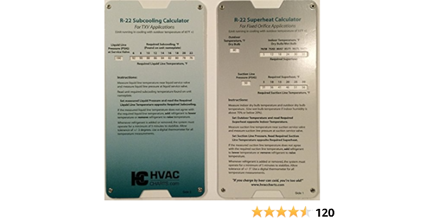 Amazon Com R22 Superheat Subcooling Calculator Charging Chart Hvaccharts Automotive